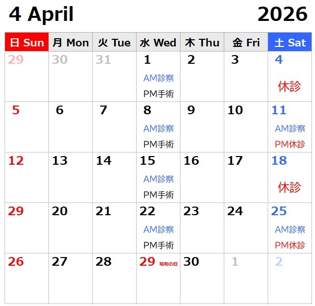 ■2021.03.22...手術担当変更のお知らせ